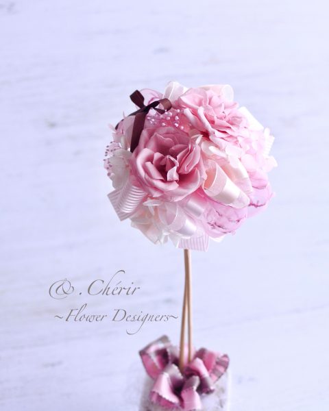 ローズ(フレンチマリアンヌ)と多種類のリボンを使用したトピアリー🌸 ふんわり優しい雰囲気のトピアリーは母の日のプレゼントにもピッタリです♪ お子様や初心者の方でも楽しく制作いただけます。